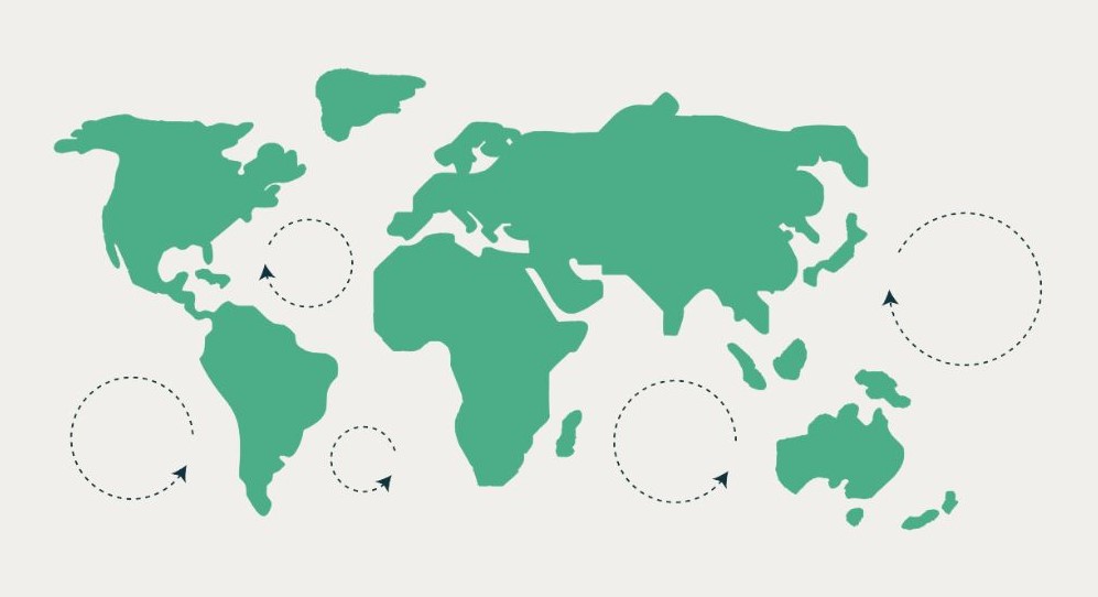 Ces zones d’accumulation de déchets sont créées par des gyres océaniques, qui sont d’immenses courants circulaires créés par la rotation de la terre. C’est ce que l’on appelle dans le jargon scientifique la force de Coriolis.