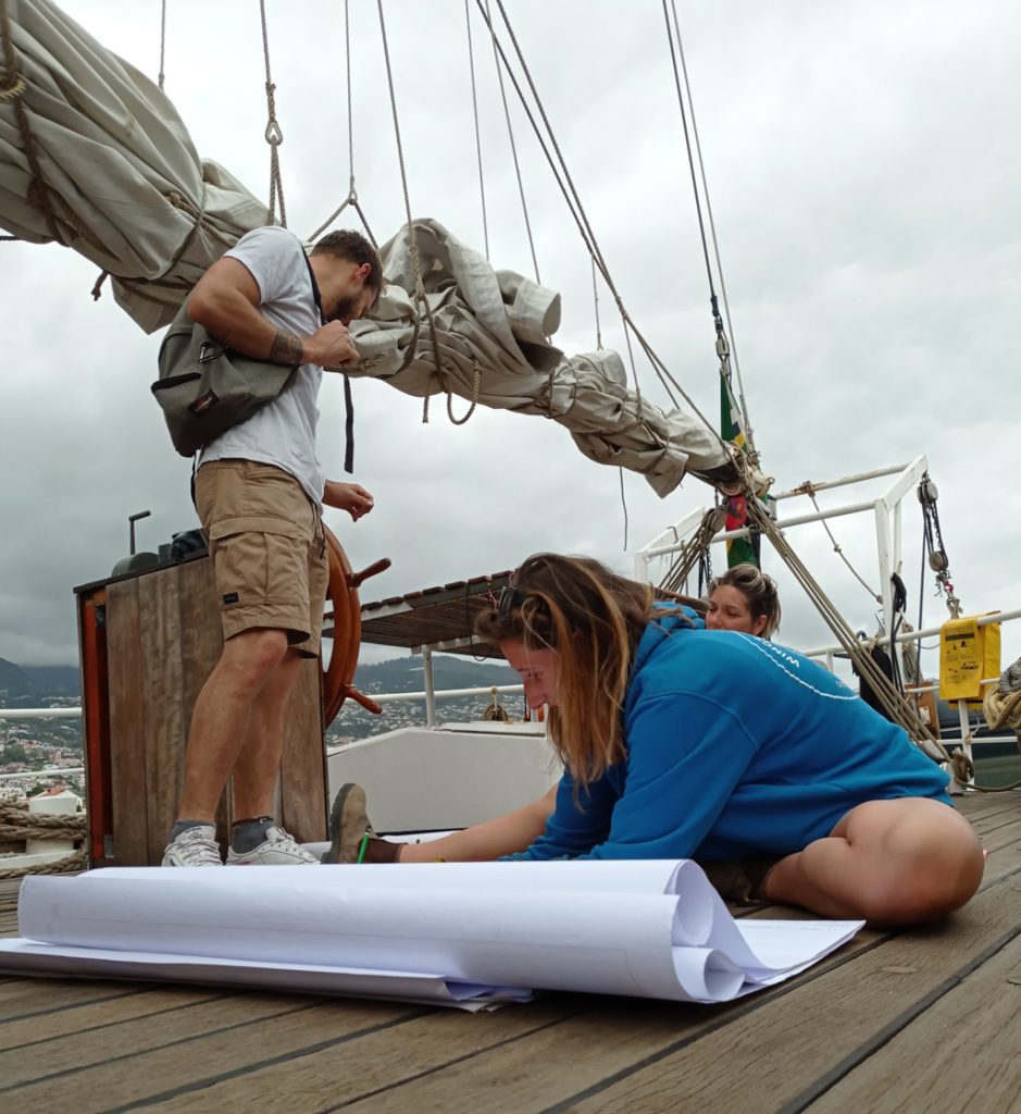 C’est donc l’équipe de choc, Manon et Indy, qui a tout mis en œuvre pour préparer au mieux notre débarquement en se rapprochant de Francis Zino, ornithologue, Manuel José Biscoito, responsable des recherches en biologie marine à Funchal, Joao Canning Clode, chercheur en micro-plastique, Joao Monteiro, chercheur au MARE Institute, Joao Rodriguez, directeur régional de la jeunesse et deux doctorants en micro-plastiques Annalisa Samboli et Claudio Manda.