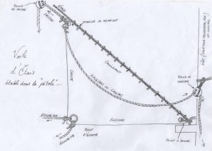 Les voiles du Kraken font entre 30 m2 et 90 m2 chacune. La plus grande voile étant la Voile d’étai de Grand Mât, la plus petite étant le Clin Foc. Même si c’est « la plus petite », cette dernière fait quand même la taille d’un petit appartement parisien …