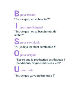 Pour éviter la surconsommation, la méthode BISOU propose de se poser les bonnes questions avant un achat.